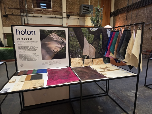 各公司展示了合成蛋白质纤维、发酵基础面料等各种技术实力,而Herifarms则通过将蘑菇菌丝体制成面料的“Wet Blue蘑菇皮革”公开,证明了其差异化的竞争力。