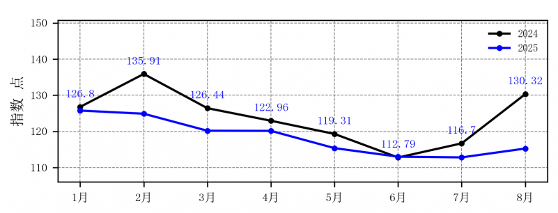 图3 2024年-2025年1-8月农业农村部菜篮子产品批发价格指数