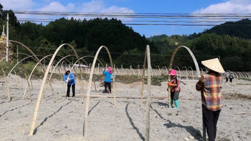 江西德安县磨溪乡食用菌种植基地建设正酣