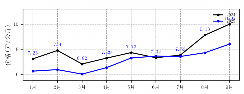 图2 2024-2025年1-9月平菇价格对比图