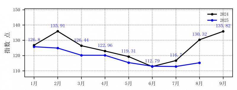 图3 2024-2025年1-9月农业农村部菜篮子产品批发价格指数